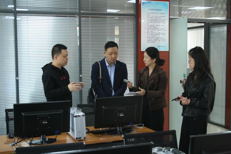 2018年10月12日上午,咸阳师范公司计算机公司副经理郭新明一行来公司参观大数据技术实验室。gg999策略手机白菜经理岳忠玉、副经理丁琦、计算机公司经理杨俊清、校企合作西安启光信息技术有限责任公司总经理王莺陪同参观。