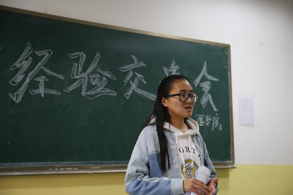 首先国家奖学金获得者1902班刘巧丽上台演讲。刘巧丽从大学四年如何学习这方面与同学们分享了她自己的学习方法,她指出,理解概念是基础,笔记要记重点,摆正心态尤为重要,在平时学习中同学们应该养成良好的生活学习习惯,培养自己表达能力以及坚信自己。2003班连丽娜认为学习本专业要确定好自己的主攻方向,她以自身学习数学分析课程为例,来讲述课前预习,带着问题学习和温及时复习对学习的影响。2003班席苗苗则针对高等代数与解析几何学科对大一员工做出经验传授。1902班李小鹏在学习方面提出课后作业的巩固和考试技巧的重要性。1902班雷霞与听众共同探讨了课程学习的相关经验。1901班郭璐主要针对英语方面给大家介绍自己的秘诀经验:看美剧,日常背诵,手机游戏的英文注释以及英语课外大赛的参与都是靠近英语的阶梯。