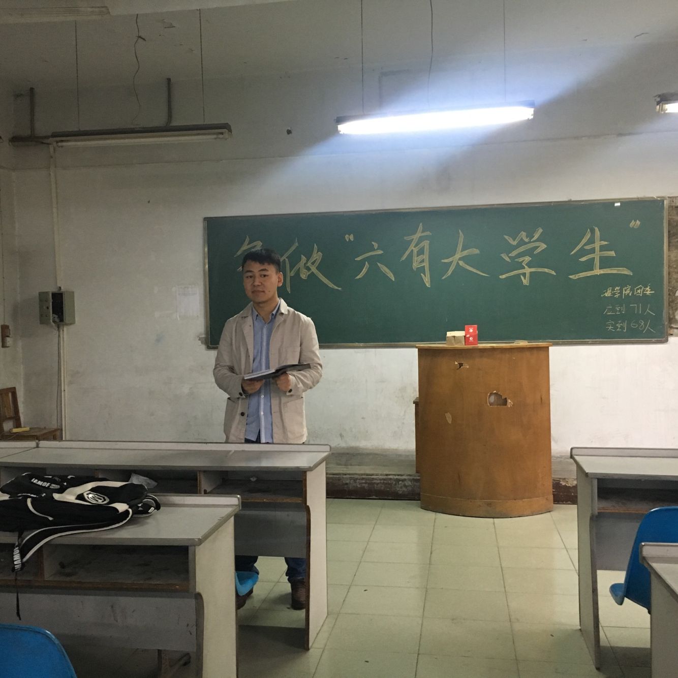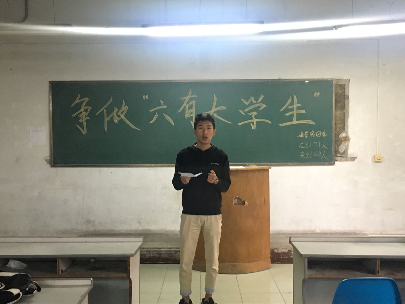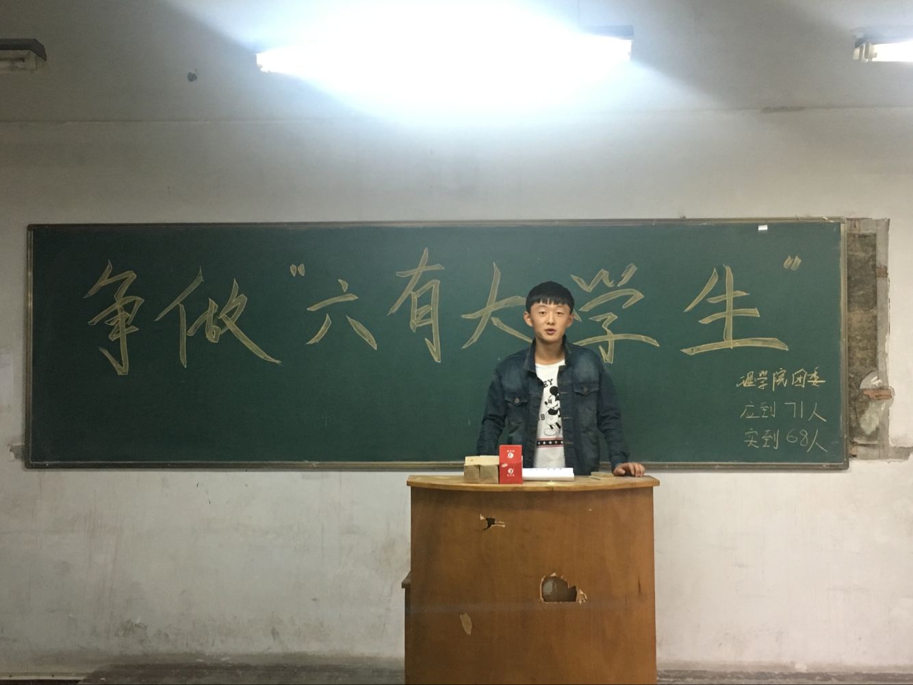 首先,寇帅佳向同学们解释了了何为“六有”老员工,即做一个有理想、有追求、有担当、有作为、有品质、有修养的老员工。首先员工会主席刘亚军发表讲话,他表示大家可以从自己做起,可以先给自己一个小目标,比如考过英语四级,从而带动自己身边的人的学习积极性,影响身边的人。之后团总支副书记朱宗贵对大家提出要求,希望大家可以做到“三入”,即在学风、班风、宿舍文化的建设中要始终秉持“入心、入脑、入行”理念。现代老员工普遍存在六有六无,即有智商,没有智慧;有前途,没有状态;有雄心,没有烈胆;有文化,没有教养;有知识,没有思想;有眼光,没有见识,同学们在今后的学习生活中要做到发扬六有,杜绝六无。