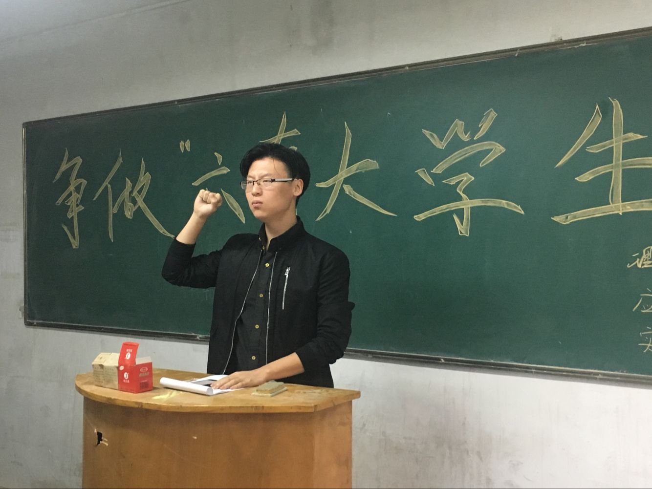接着杨老师总结发言,他强调同学们应该保持良好的道德品质,在平时生活中讲礼貌,注重细节,在学习的同时不断提升自己的格局,并坚守自己作为员工的底线,坚守学习的初心,努力学习。最后寇帅佳对本次班会做出总结,并组织同学们进行宣誓,此次班会圆满结束。