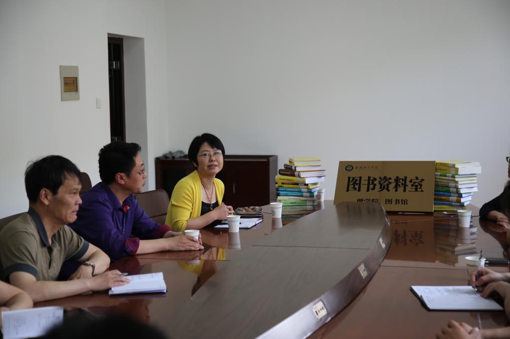 岳忠玉首先发言,他就图书资料室的建成原因,馆藏结构,资料来源和借阅方法等方面做了简要介绍。