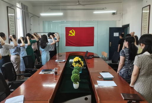 当天,一面鲜艳的中国共产党党旗悬挂在活动现场中央,在党总支书记胡红亮的带领下,全体教工党员面对党旗,举起右拳,重温曾经许下的庄严宣誓:“我志愿加入中国共产党……随时准备为党和人民牺牲一切,永不叛党。”在这一刻,八十个字的铮铮誓言,历经岁月的磨洗,愈加清晰,初心使命历久弥坚。