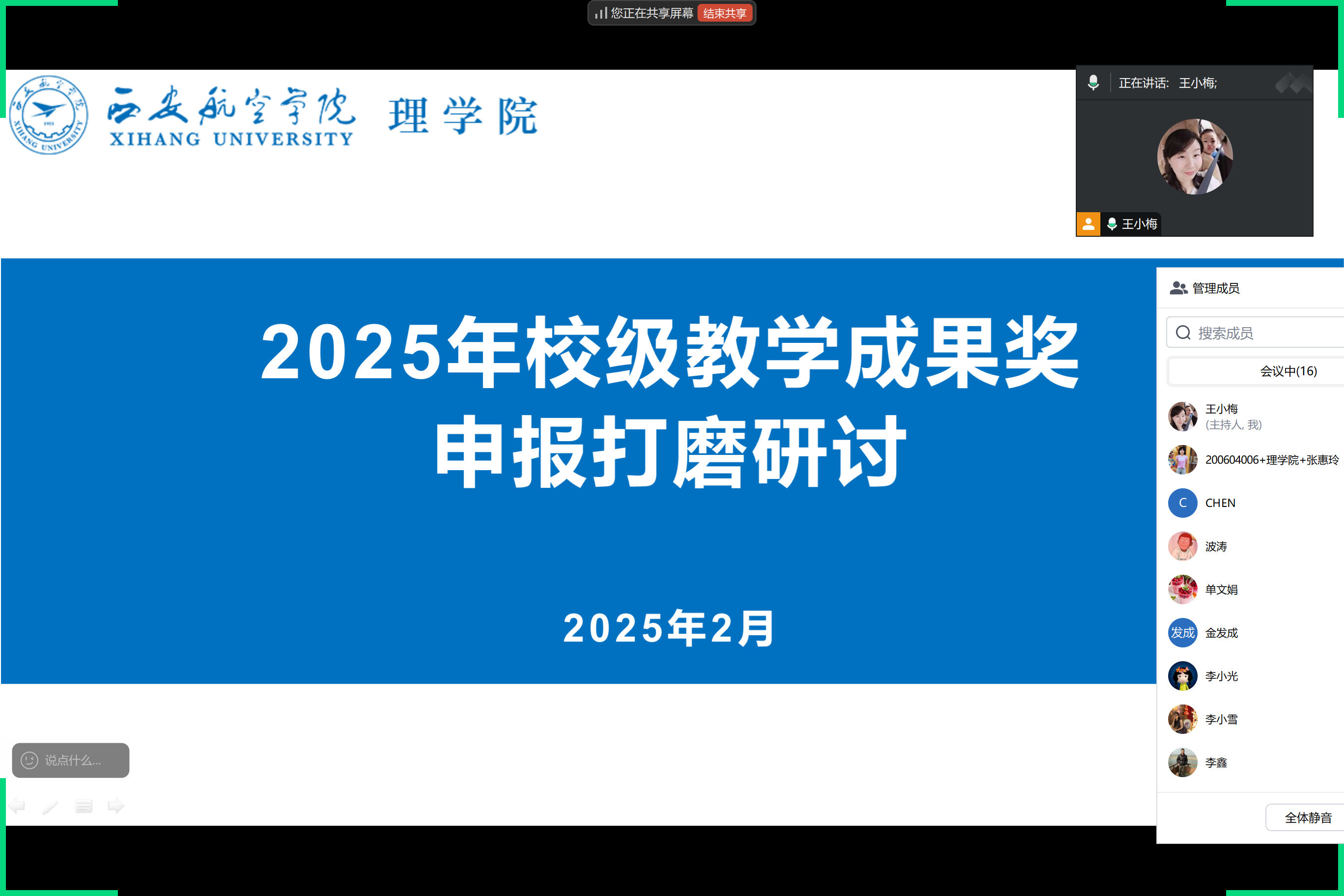在“2025年教学成果奖申报书”打磨环节,参会人员对拟申报的3项教学成果奖申报书进行了深入细致的指导。主要从成果的凝练、创新点的表达、特色的体现、人工智能的融入等方面提出了宝贵的意见和建议,为2025年度公司教学成果奖申报工作奠定了良好基础