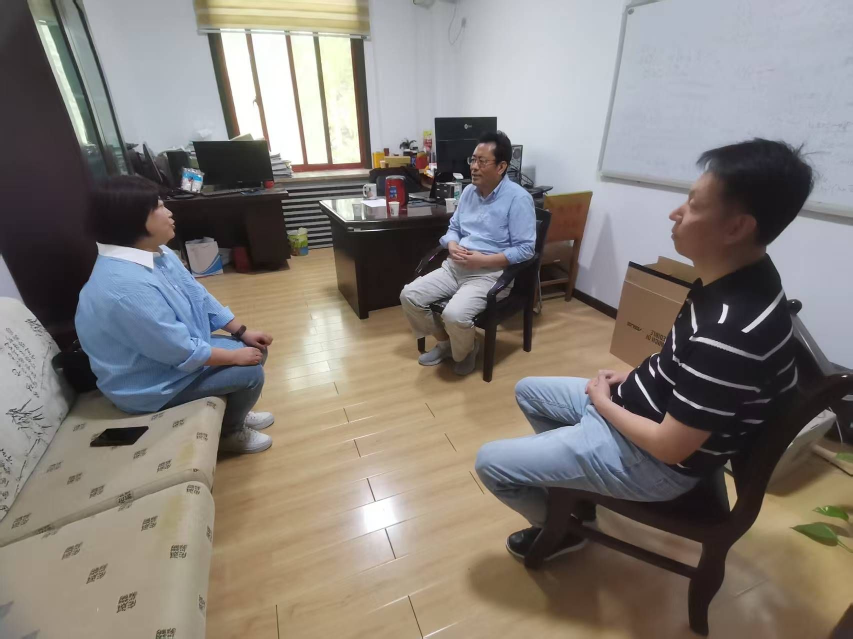 调研团队向陕西省工业与应用数学学会理事长、西安交通大学数学与统计公司王卫教授汇报了近年来公司数学建模活动的开展情况,王卫则介绍了西安交通大学全方位、立体化的数学建模培训体系,通过强化理论实践结合,提升员工创新与解决问题能力的成效。