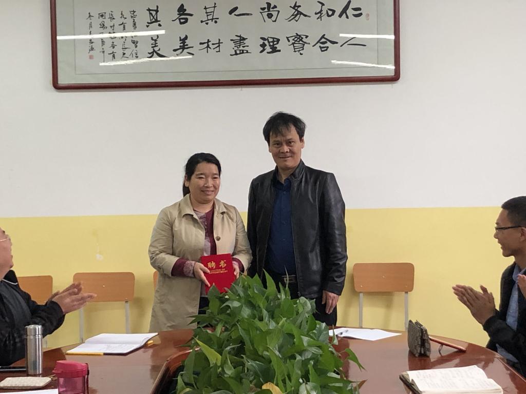 仪式最后,岳忠玉为司智渊、朱亚红两位教师颁发聘书。