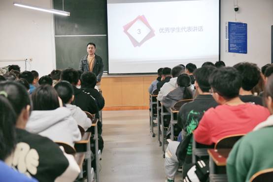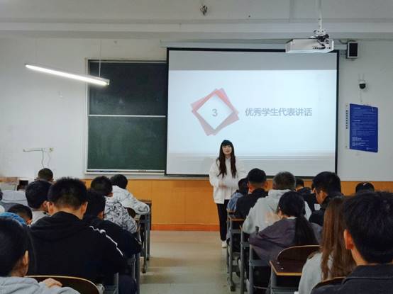 首先,李扬向大家介绍学风建设月系列活动,鼓励大家走进图书馆,多读红色书籍,坚定理想信念,多读专业书籍,丰富自己的见识,拓宽自己的视野。同时,李老师给出了优秀班级和宿舍的评选标准,并提出了具体要求,鼓励各班级争做优秀班级,各宿舍争创优秀学风宿舍。随后各年级专业第一名同学给同学们分享自己的学习经验,在大学四年里,要树立理想目标,以学业为重,提高自身修养,完善自身人格,并分别就自己擅长课程交流了自己的学习经验。最后,优秀班级光电201的班长马笑河同学分享经验,他陈述了自己对待工作细心负责的态度,分享了班级管理经验,班级学风好了,学习氛围就好,学习成绩会提高,班级向心力和凝聚力会增强。
