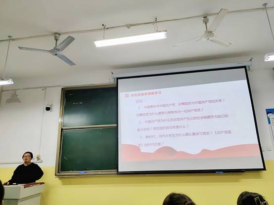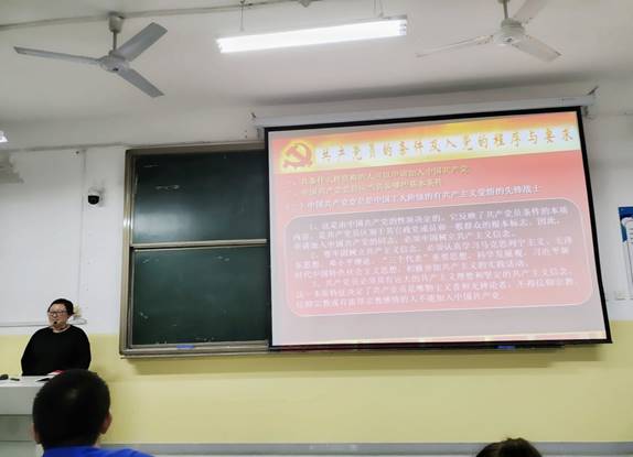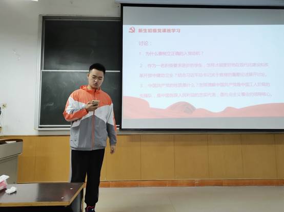 团总支书记张岩说明了共青团的历史和对共青团员的要求、中国共青团与中国共产党的关系,希望同学们能在后续的环节中自觉主动的履行各种义务、承担属于自己的责任。