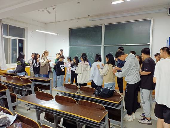 杨元媛首先介绍了本次活动的内容和教育意义,阐述了心理健康对同学们的重要性。随后,主持人将十六名同学分为一组,每位同学在站在自己前面的同学背上写上一个字,前一位同学猜所写的字并将其记录在纸上。活动结束后,大家根据猜对的次数投票选出了心理推理判断能力最突出的六位优胜者,并对六位优胜者做出奖励,在轻松愉快的氛围中,此次活动圆满结束。