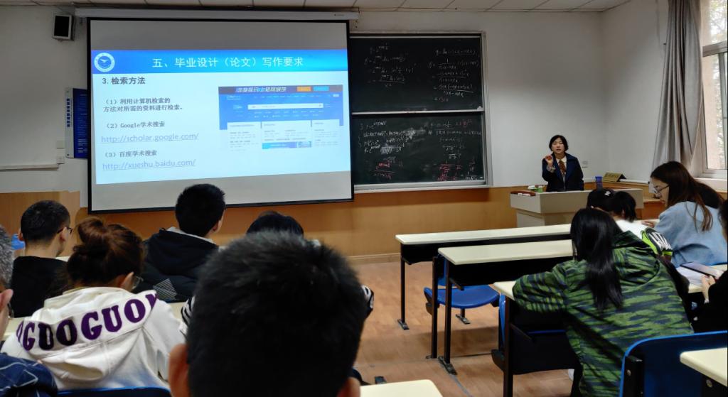 副经理丁琦为2017级信息与计算科学专业全体本科生做毕业设计动员。她指出,这次大会标志着大家进入大学最后的一个阶段,同学们在思想上要高度重视,在执行上要注意把握时间节点,在学术诚信上要有底线意识。她指出老员工涯是全方位提升升华的过程,最后的半年是用论文创新性解决问题的时期,而毕业设计(论文)环环相扣,任何一个环节都会对最终的结果产生影响。