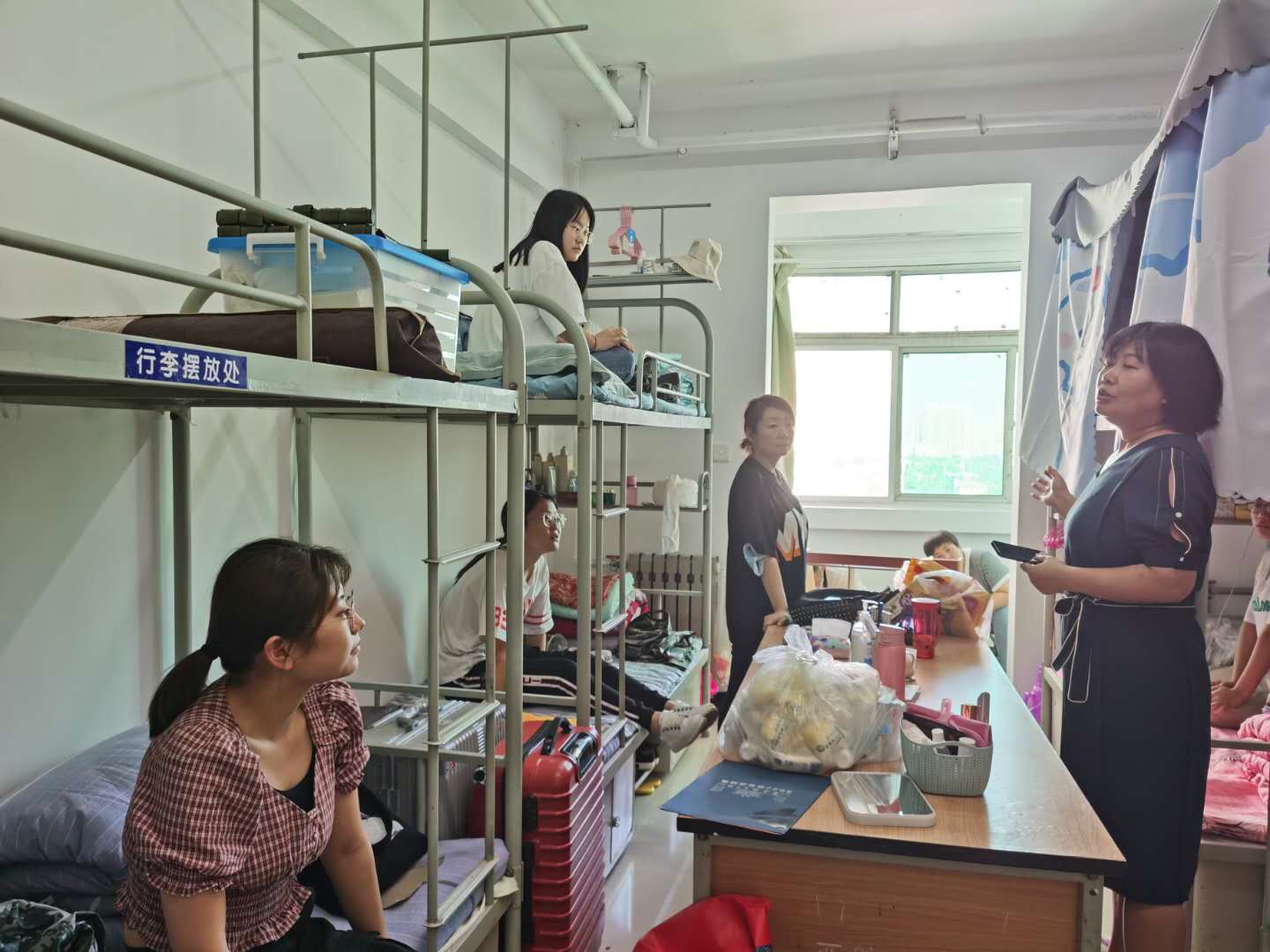 下午3点,李小光和李扬进入宿舍对新生及家长进行慰问,向新生表示欢迎,对员工和家长的一些疑惑进行了解答。