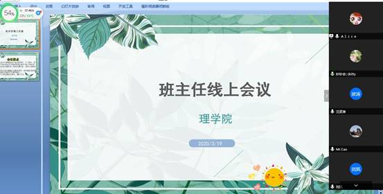 在我们全民防疫抗疫期间,更应该注重师生之间的交流。本次会议正向大家说明了这一点,即使教学工作受到了很大程度的阻碍,但大家的心是连接在一起的,希望疫情能早日结束。(文/光电信息181杨航 图/光电信息181唐紫怡)