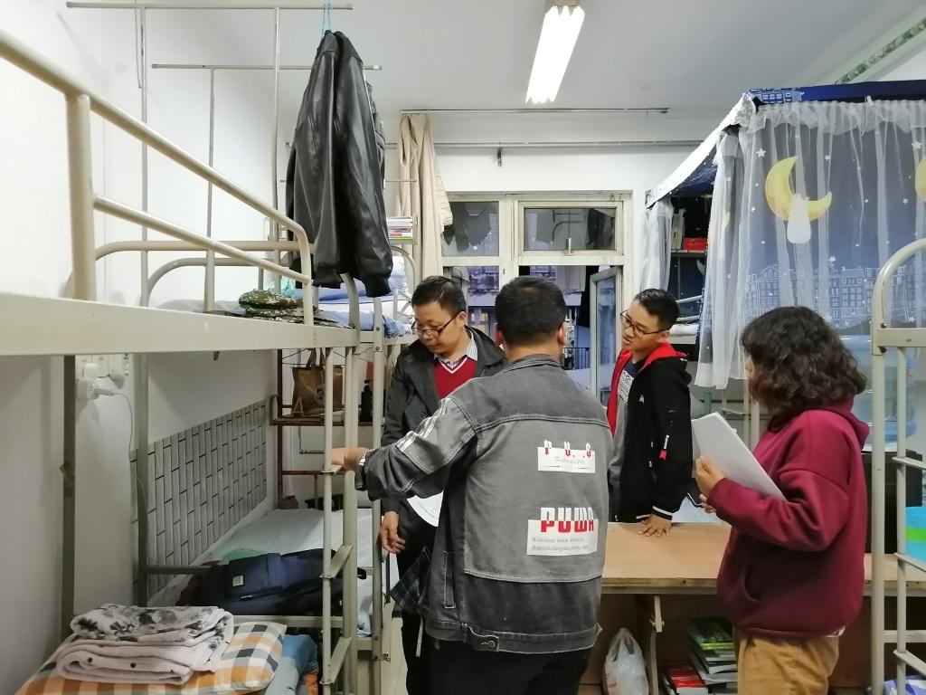 2019年10月9日,为了保证员工们有一个良好的生活环境,信息计算191班潘灵刚班主任带领本班全体班干部到宿舍进行了卫生检查。