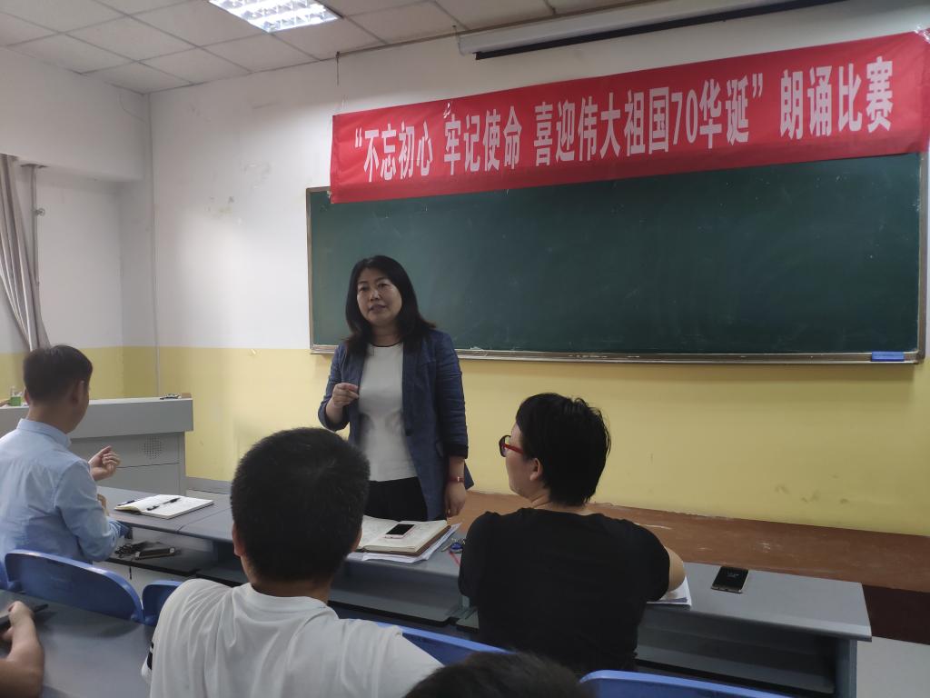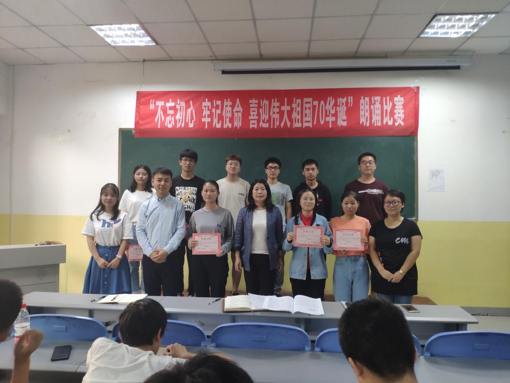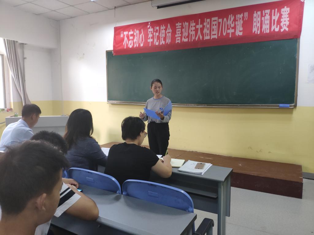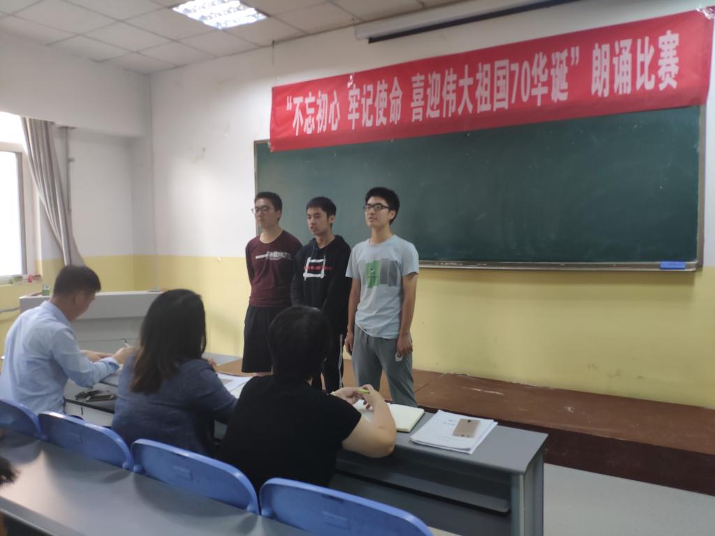 为庆祝中华人民共和国成立70周年,加强对员工爱国主义教育,2019年9月26号至29号,gg999策略手机白菜在南楼408举办了“不忘初心,牢记使命,喜迎伟大祖国70华诞”主题朗诵大赛。gg999策略手机白菜各班级均派出员工代表参加,共12支代表队参加了比赛。朗诵大赛评委为公司党总支书记李小光、员工管理科科长李扬,团总支书记杨陈东及员工会部分干部。观众为所有大一新生。