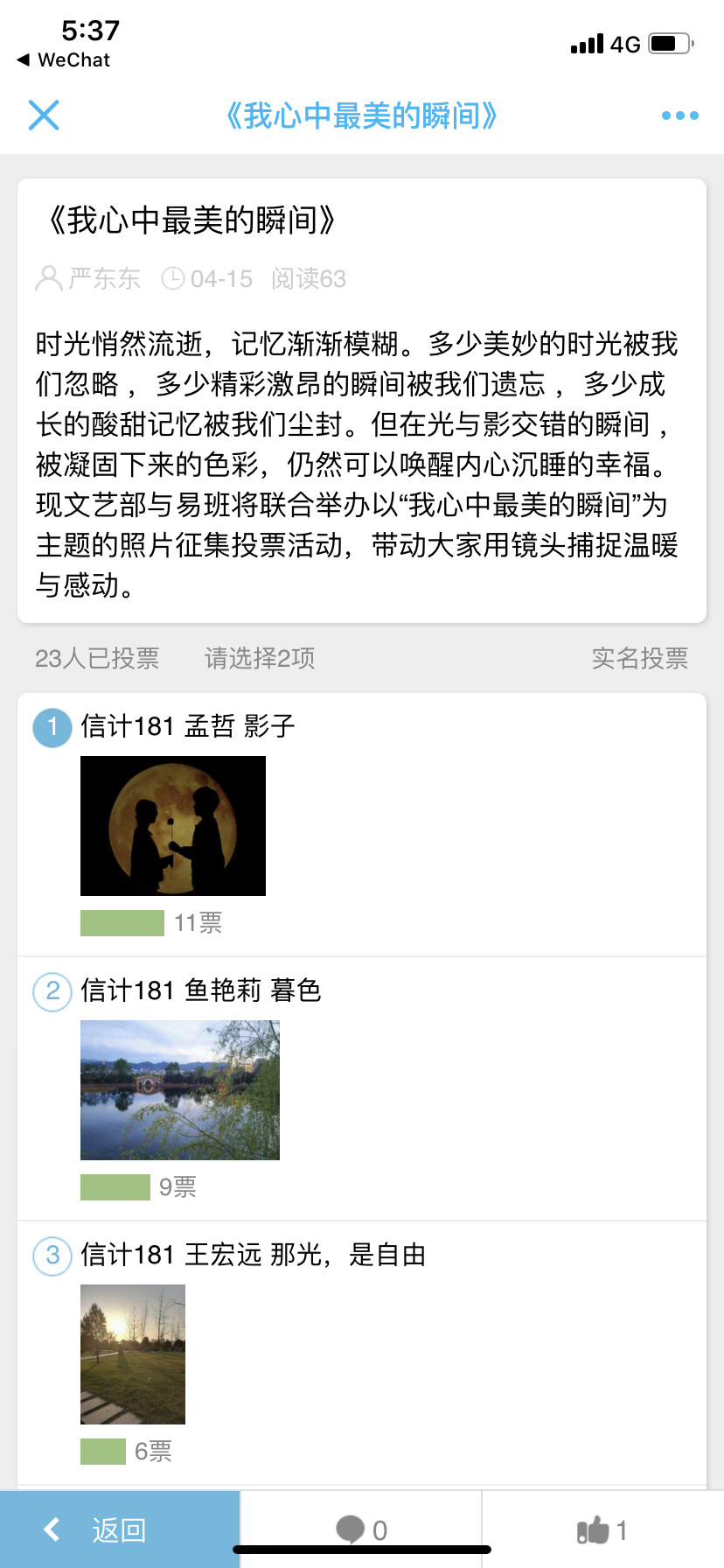 2019年4月15日,gg999策略手机白菜文艺部与易班工作站在易班线上联合开展了以“我心中最美的瞬间”为主题的活动。
