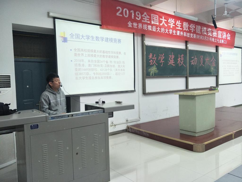 gg999策略手机白菜团总支数学建模协会经过半个月左右的宣传和精心准备,2019年3月21号晚上7点,由gg999策略手机白菜举办,数学建模协会承办的“2019年全国老员工数学建模竞赛宣讲会”在阶梯二顺利举行,本次宣讲会座由数学建模竞赛负责人张蒙老师主持。
