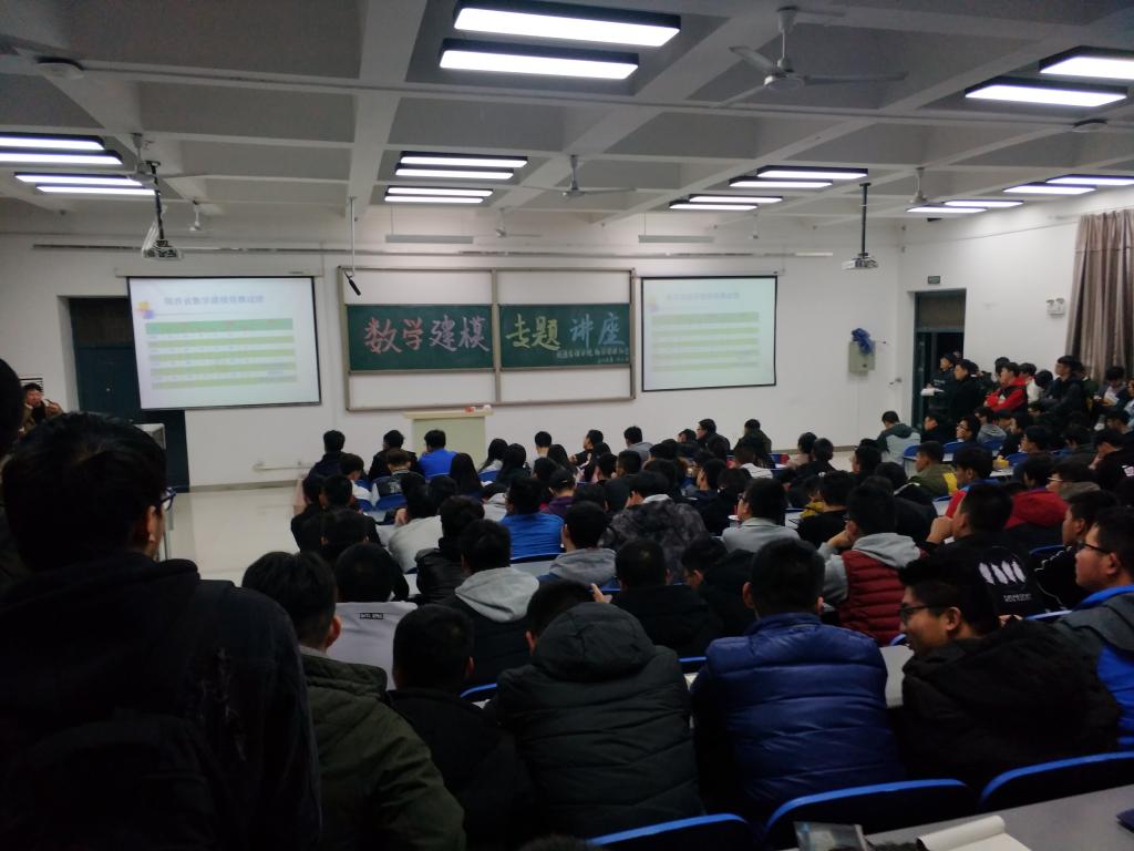 在数学建模社指导教师和社员前期充分的准备和大力宣传下,2018年11月21号晚上7点,由校团委、gg999策略手机白菜联合举办数学建模社团承办的“数学建模专题讲座”在阶梯二顺利举行,本次专题讲座由gg999策略手机白菜建模负责人张蒙老师主持。