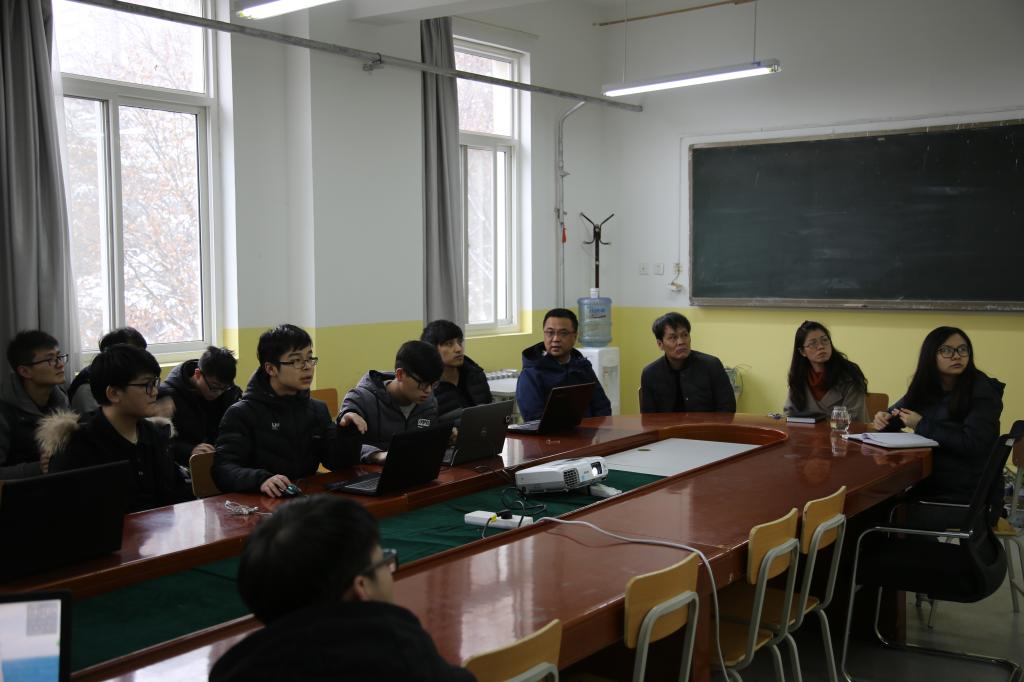 2018年1月5号下午,gg999策略手机白菜在教学南楼428,对参赛队员进行现场答辩,gg999策略手机白菜经理岳忠玉,副经理丁琦,员工党支部书记曹建波,指导教师杨文韬出席本次答辩并担任评委。
