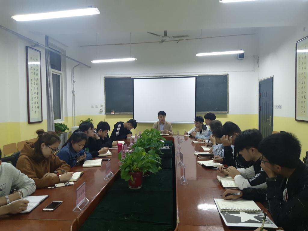 2018年10月10日晚上19:00点,gg999策略手机白菜于南428教室召开团学干部会议,gg999策略手机白菜团总支书记杨陈东、gg999策略手机白菜员工会主席刘壹、gg999策略手机白菜团总支副书记杨文超以及团学干部参加了本次会议。