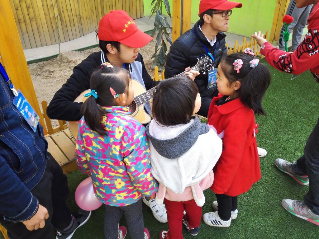 活动期间,志愿者与小朋友亲密相处,坐在一起,面带笑容,一边拍手一边唱歌。接着又跟小朋友们一起做游戏。抢凳子、老鹰捉小鸡为大朋友和小朋友都带来了欢乐。游戏能使孩子们的童年充满快乐,同时在游戏中老员工们学会了解幼儿心理,掌握与儿童交流的技巧。之后青年志愿者为小朋友分发纪念小礼物以及学习用品。最后,志愿者们与小朋友合影留念,孩子们纯真的笑脸是这个春天最美的画面。