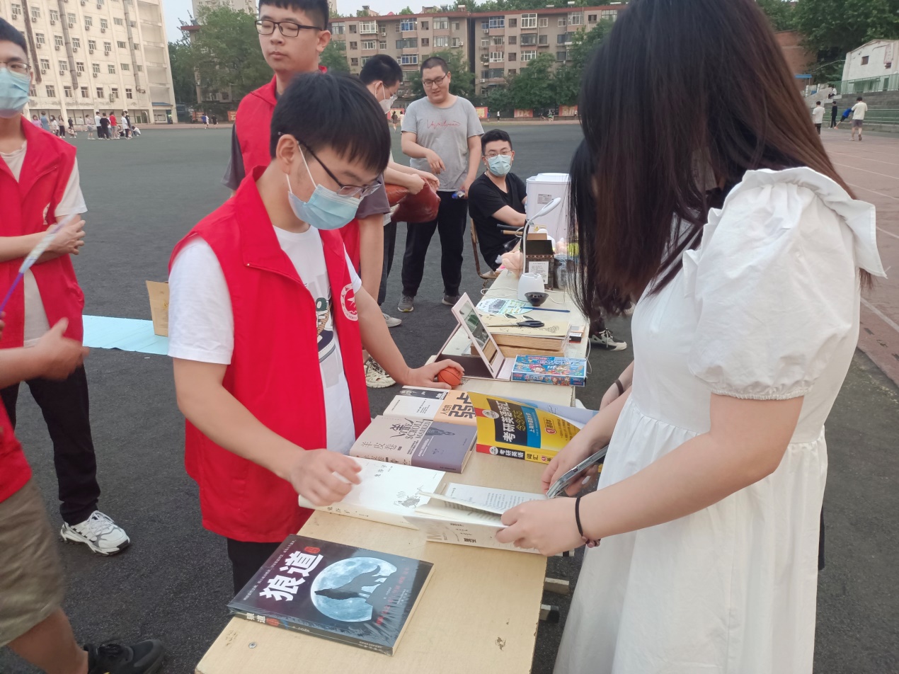 当天下午,跳蚤市场的开市成为了西航操场的一道亮丽的风景线,在员工会其他各部门的积极配合下,在活动宣传期取得了良好的宣传效果。在活动中,学长们将不用的书籍、键盘等物品低价出售,减轻了自己毕业时的行李负担,同时也帮助其他同学能够用比较低的价格获得自己需要的物品。活动的筹办期间,志愿者们不辞辛劳,积极向同学们推荐各种商品,收拾场地,扮演销售者,每一次交易的成功都与志愿者的努力紧密联系。