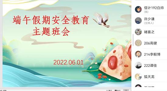 2022年6月1日,gg999策略手机白菜各班级通过线上线下相结合的方式组织召开了端午节假期安全教育主题班会。班会由各班主任主持。