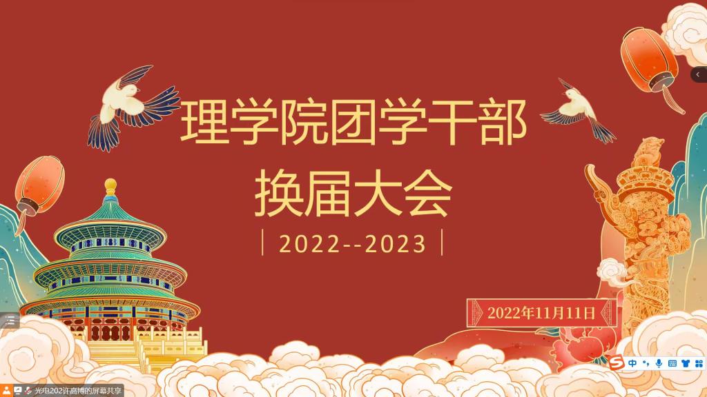 2022年11月11日下午18点,gg999策略手机白菜于线上召开团学组织换届大会。gg999策略手机白菜团总支书记、辅导员张岩和全体团学组织成员参加会议。会议由许高博主持。