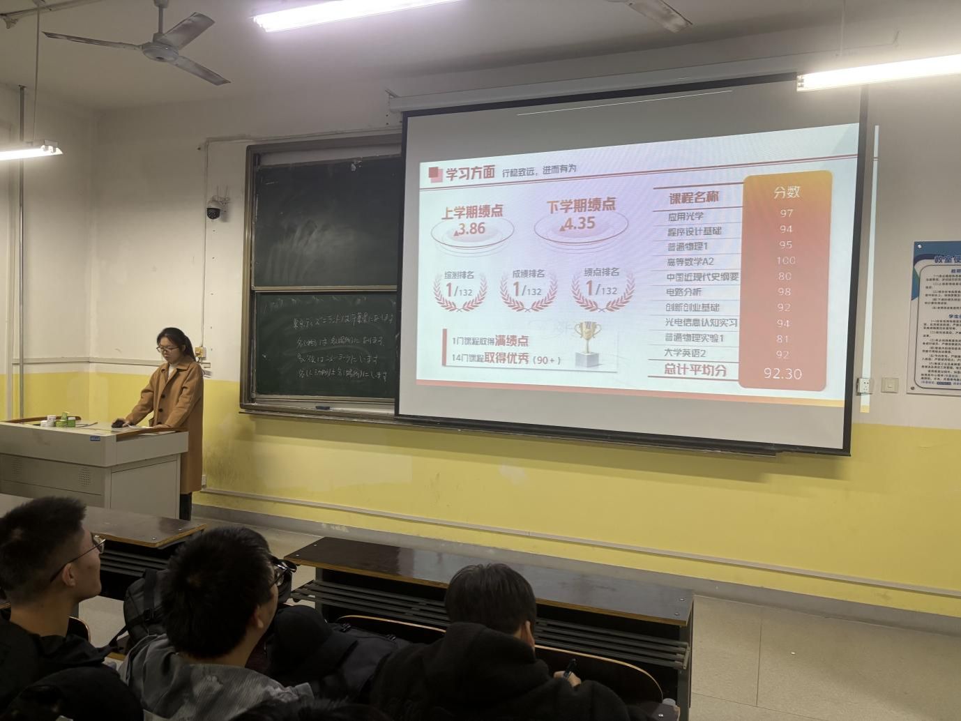 本次会议聚焦两大核心板块:朋辈经验分享与毕业通关指南解读,为同学们的学业与未来发展提供了明晰的指引与宝贵的借鉴。会议特别邀请光电信息专业王雨晴和信息计算专业刘显婷结合自身情况,围绕学习策略、科研竞赛、时间统筹与社团活动等方面进行经验分享。分享结束后,同学们就自己感兴趣的话题同优秀学姐进行交流。
