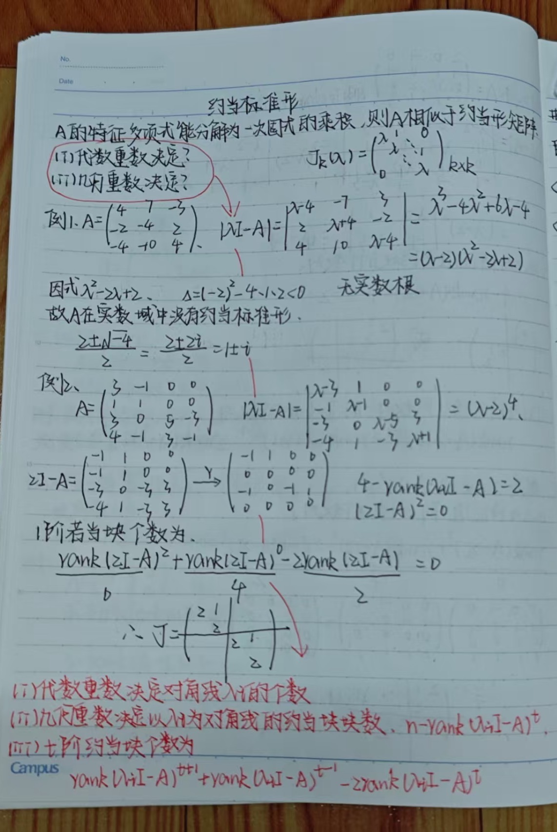 梁靖楠同学的笔记理论框架与实例解析层层递进,符号标注清晰,逻辑链条完整,体现了对高等代数的深刻理解。