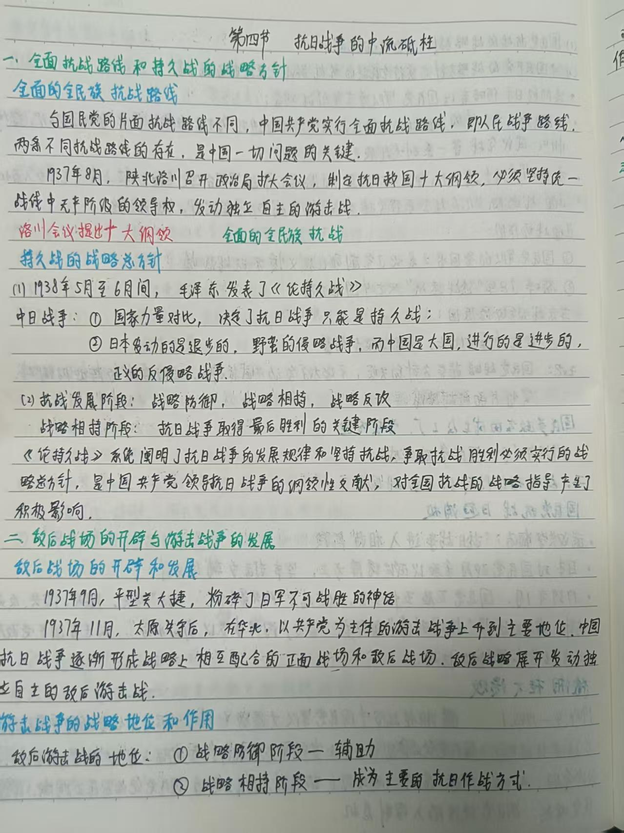 王思彤同学的笔记以时间线为轴,巧妙融合会议决策、战略理论和战役实例,体现了严谨的修习态度和深刻的历史洞察力。