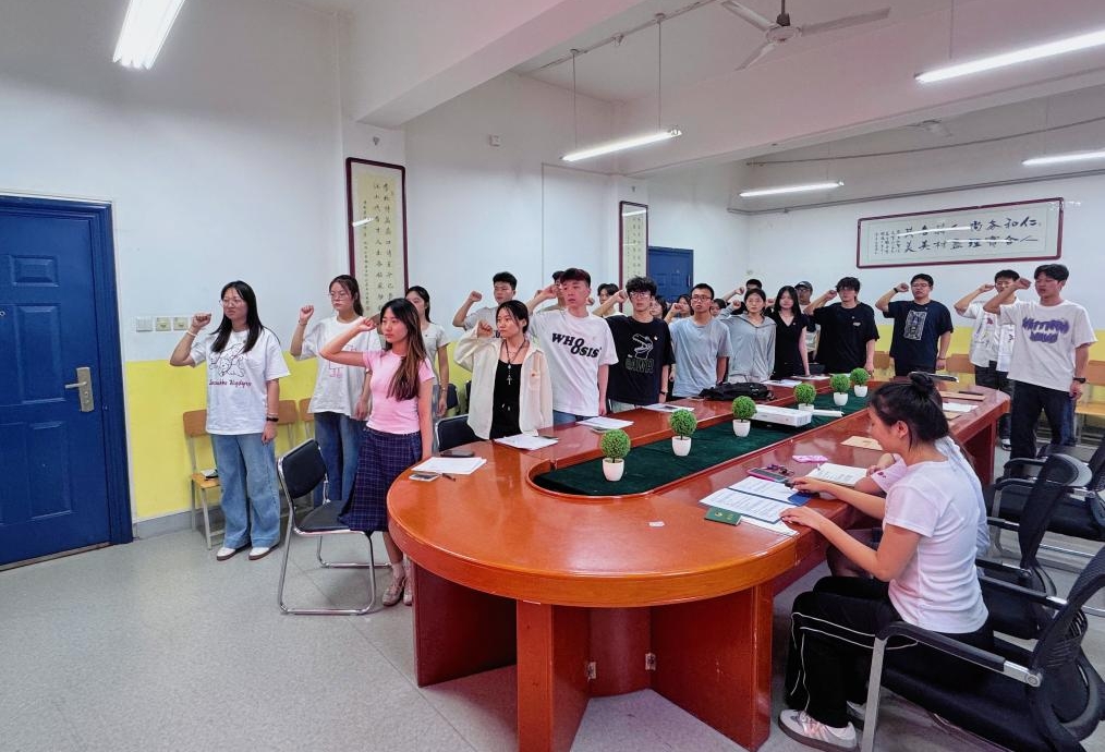 为加强团组织建设,激励青年团员勇担时代使命,gg999策略手机白菜团总支于5月20日晚在南428会议室举办新发展团员入团宣誓仪式。团总支书记王向阳、辅导员曾妍,全体新发展团员参与本次会议。