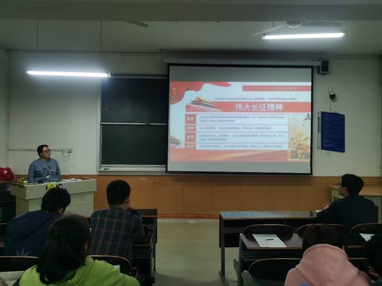 李扬老师讲到:2021年是中国共产党建党百年。100年来,我们党带领勤劳勇敢的中国人民不懈奋斗,迎来了从站起来、富起来到强起来的伟大飞跃。在这漫漫征途中,没有哪一次进步不是靠伟大精神引领。我们要学习革命先辈们传承下来的伟大精神,让精神之光,照亮我们前行的路。接着李扬老师为同学们说明了长征精神的内涵:诠释出乐于吃苦,不惧艰难的革命乐观主义;勇于战斗,无坚不摧的革命英雄主义;重于求实,独立自主的创新胆略;善于团结,顾全大局的集体主义。其主题是“一不怕苦,二不怕死”,其最显著的特点就是革命英雄主义精神。长征精神是中华民族百折不挠、自强不息的民族精神的最高表现,是保证我们革命和建设事业从弱小走向强大的精神力量。
