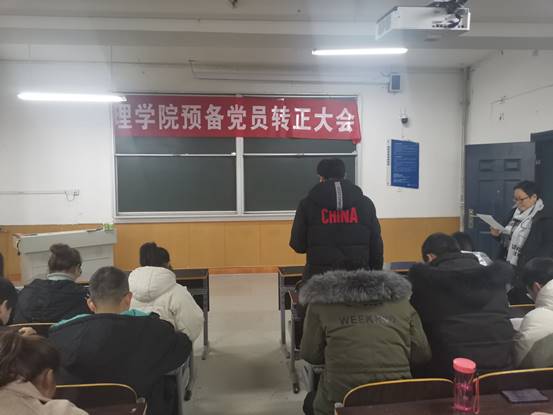 会议开始,首先组织委员潘灵刚老师清点参会人数,介绍参会的正式党员,会议议题以及大会要求。之后4名预备党员宣读《转正申请书》以及需要向党组织说明的其他问题,由入党介绍人介绍预备党员近一年来的表现情况和培养教育情况,并对其能否转正表明意见。紧接着支部成员充分发表意见,对预备党员能否按期转正进行讨论。随后正式党员进行无记名票决,票决结果显示大家一致同意上述4名同志按期转正。最后由宣传委员杨陈东老师代表支部宣读支部决议。最后,员工支部书记李扬老师对上述同志表示祝贺,并提出要求,希望他们坚持实事求是,求真务实,更加严格要求自己,做好表率,发挥党员模范先锋作用。(文/图 许嘉豪)