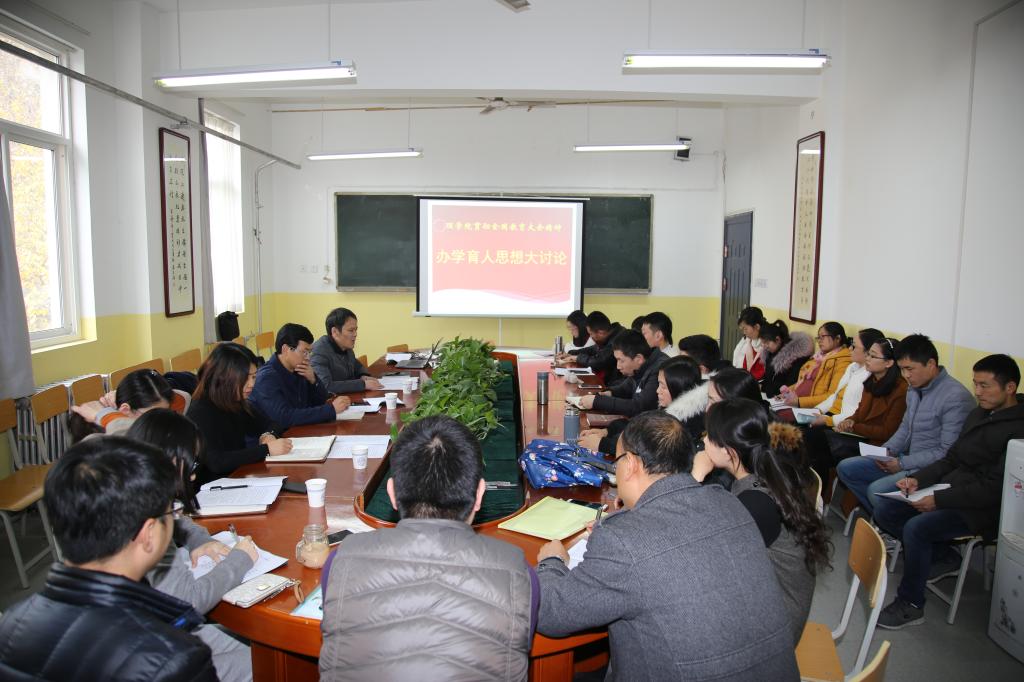 12月7日下午,gg999策略手机白菜在南428会议室开展贯彻全国教育大会精神办学育人思想大讨论活动,副董事长宋文学、gg999策略手机白菜经理岳忠玉、党总支书记李小光、副经理丁琦以及gg999策略手机白菜全体教职工参加本次活动。活动由岳忠玉主持。