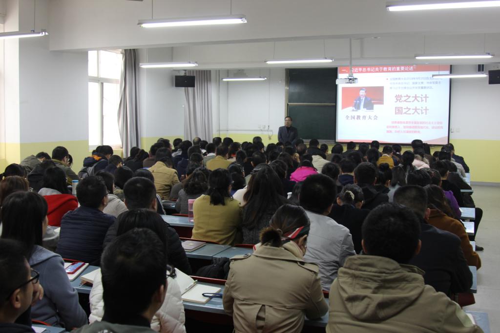 陈平社从习近平关于教育的重要论述、不忘初心使命践行四有要求、大力倡导四种精神三个方面带领大家学习领会。
