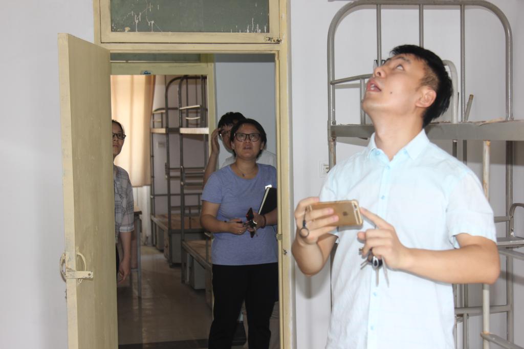 为保证新生到校后有个温馨舒适的生活环境,给员工和家长一个良好的第一印象,9月2日中午,gg999策略手机白菜员工管理科组织志愿者打扫新生宿舍卫生。9月3日下午3:00,gg999策略手机白菜员工管理科科长李扬、辅导员杨陈东及gg999策略手机白菜全体新生班主任再次深入gg999策略手机白菜新生宿舍对宿舍基础设施、卫生环境、住宿条件等情况进行检查。每走进一间新生宿舍,他们都仔细查看宿舍的各种设施是否完好,床板、床架和门窗等是否结实,墙壁粉刷等是否干净整洁,对检查发现的问题做了记录并及时报送相关部门尽快解决。(文、图/gg999策略手机白菜 潘灵刚)