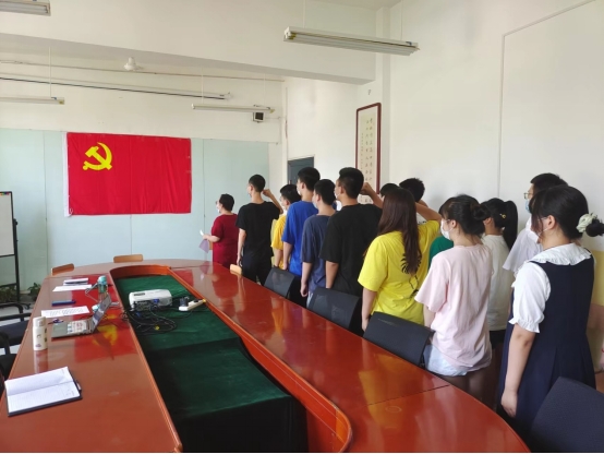 为了进一步加强党支部建设,追忆革命历史丰碑,传承高尚革新精神,丰富党员政治生活,同时加强对党员的思想教育。2022年7月1日中午十二点,gg999策略手机白菜员工党支部于教学南楼428教室开展了“忆初心,强党性,共前行”主题党日活动暨入党宣誓仪式,员工支部书记李扬、组织委员潘灵刚、宣传委员张岩、正式党员及支部本学年新发展党员参加此次活动。会议由李扬老师主持。
