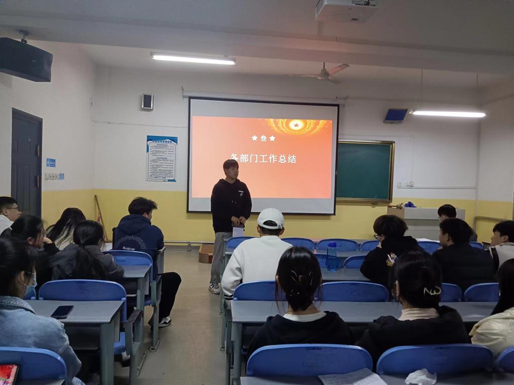 会议伊始,张岩对上一学期团学组织的各项工作做出简单总结,肯定了各个部门取得的优异成绩,对部门开展的特色活动和创新节目提出表扬,同时指出需要改进的地方。员工会主席许高博对上一学年主席团的整体工作做出总结,提出上一学年工作的整体收获以及存在的不足,并表明在本学期,会加强各个部门之间的联结,不断协调和强化部门的能力,发挥部门的最优水平。随后,各个部门负责人对上一学期部门工作进行总结,并对新学期的工作安排作出说明。最后,张岩老师对本学期的工作作出具体安排,强调在新的一年中各部门要端正工作态度,切实履行各项工作职责,希望各个部门能够紧密结合,相互配合,共同发展,在新的学期继续保持积极进取的精神风貌。