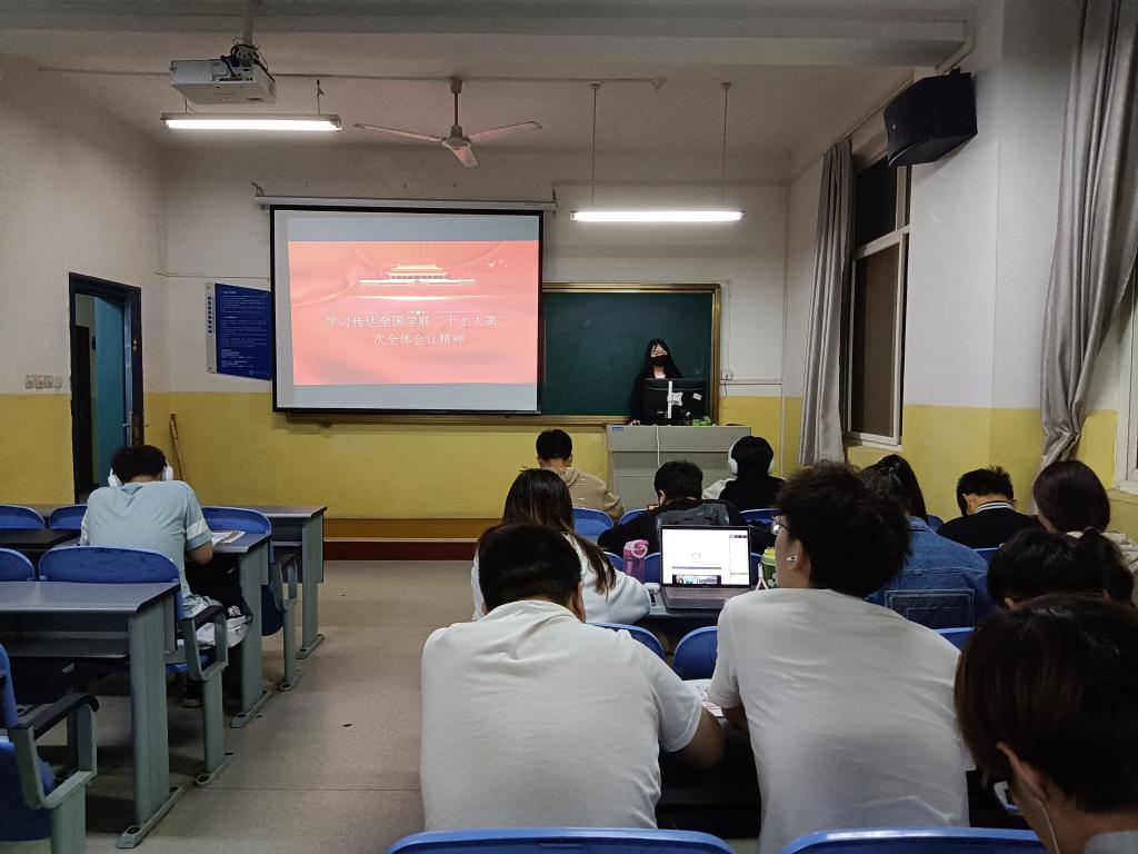为深入学习贯彻党的二十大精神,坚定青年员工理想信念,5月29日晚,gg999策略手机白菜团总支在莲湖校区南楼309教室开展了“学习传达全国学联二十七大第二次全体会议精神”主题团日活动。gg999策略手机白菜全体团学干部参加。