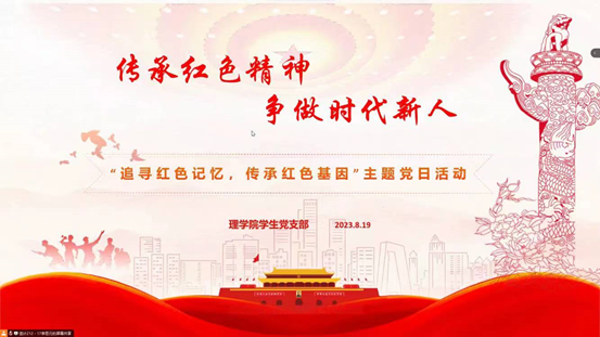 为深入学习贯彻习近平新时代中国特色社会主义思想主题教育,培养同学们的爱国主义情怀,传承和发扬老一辈革命家的精神,8月19日晚,gg999策略手机白菜员工党支部通过腾讯会议线上开展了“追寻红色记忆,传承红色基因”主题党日活动。活动由王向阳老师主持,支部全体成员参与了此次活动。