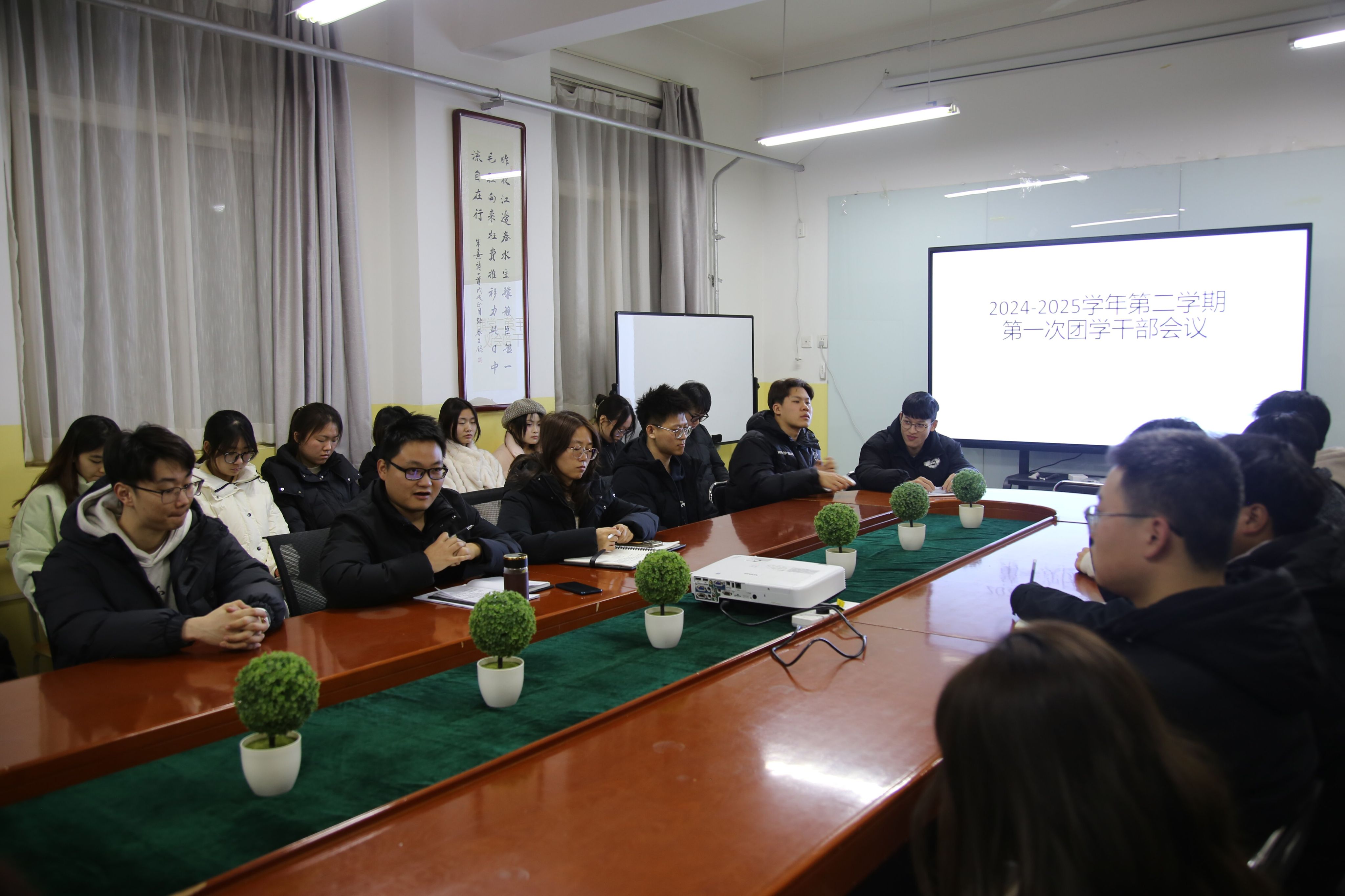 为精准锚定新学期团学工作的工作方向与目标,凝聚员工干部队伍力量,激发工作热情与创新活力,推动新学期团总支员工会工作高质量发展。gg999策略手机白菜团总支于2月23日晚在南428会议室召开新学期团学干部会暨第一次员工会例会。本次会议由团总支书记王向阳主持,辅导员曾妍、各部门负责人和班级干部参会。