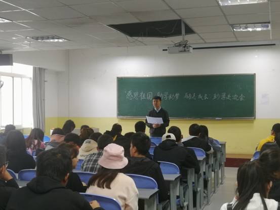 首先,杨陈东老师介绍了高等公司员工经济资助政策,从资助范围、资助标准、申请条件、申请时间、发放时间,这五个方面依次进行了详细的讲解。就今年与以往助学金评定的不同之处,向同学们一一做了解释。其次,他希望大家就评定程序多提宝贵意见,使国家资助送到最需要的同学手中。最后,杨老师以亲身家访的经历,鼓励大家要感恩党和国家的关爱,努力学习,争取学有所成、回馈党和人民。