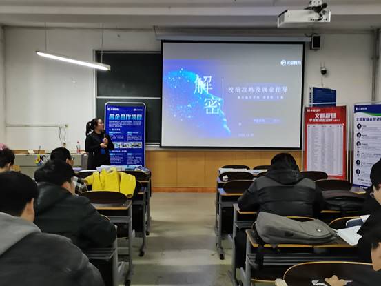 为应对当前就业形势,做好员工就业工作,提升员工就业意识,确定有效的职业发展目标,11月25日下午4点,gg999策略手机白菜在教学南楼307举办校招攻略及就业指导讲座,邀请陕西文都智链计算机科技有限公司校企合作负责人付小荣老师主讲,gg999策略手机白菜大三大四信息计算专业同学参加了讲座。