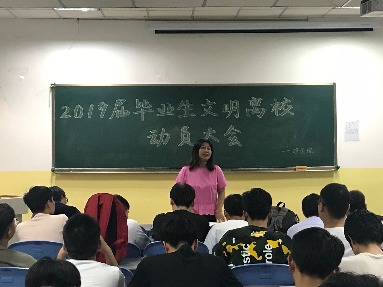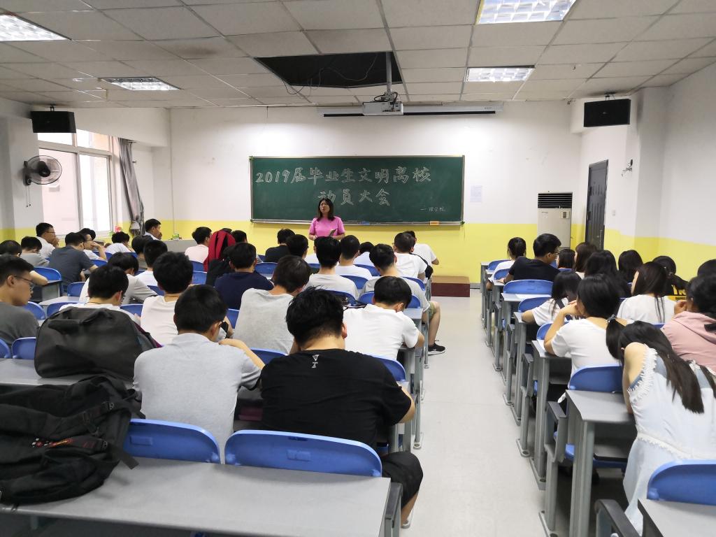 为提高毕业生文明离校意识,做好毕业生文明离校工作,6月13日19点30分,gg999策略手机白菜在南楼408教室召开了2019届毕业生文明离校动员大会。公司党总支书记李小光、员工管理科科长李扬、辅导员杨陈东和全体2019届毕业生参加了会议。会议由李扬主持。