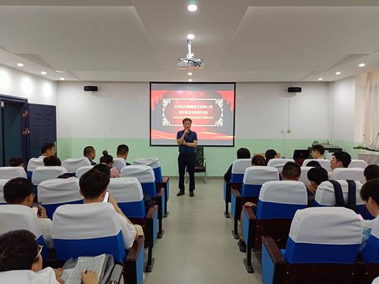 岳忠玉首先代表公司对北京拉勾网络技术有限公司黄健一行的到来表示热烈欢迎,并简要介绍了公司的基本情况。他指出,希望在未来校企双方进一步深度合作的进程中,双方各自发挥优势,积极深化合作内容,不断扩大合作领域,促进人才培养供给侧和产业需求侧结构要素全方位融合,实现优势互补、合作共赢。李小光再次向毕业生做了就业动员,希望企业能给员工在未来就业中提供更好的帮助。黄健向与会人员介绍了公司的发展情况以及近年来公司在开展校企合作方面取得的成果。他表示,公司将整合优质资源,发挥企业作用,投建相关项目,搭建产教融合平台,联合开展新一代信息技术产业相关专业群建设,努力培养高素质创新人才和技术技能人才,随后,岳忠玉老师与黄健经理分别代表公司和北京拉勾网络技术有限公司签订了校企合作协议并为教学基地揭牌。最后,黄健向2022届毕业生做了本专业就业形势分析,并对员工在求职面试中容易出现的错误一一进行举例说明,避免员工在求职中踩中雷区。