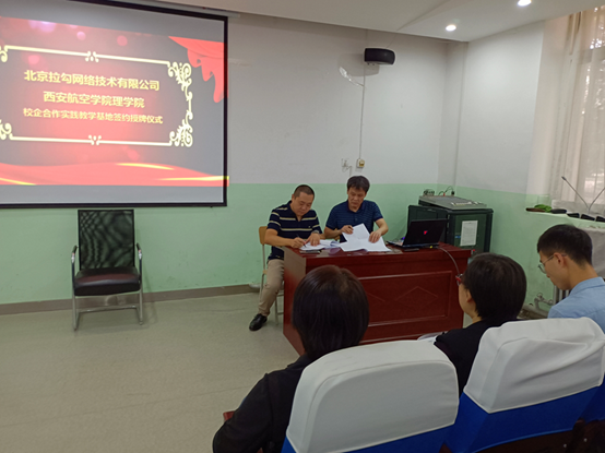 2021年9月15日下午四点半,北京拉勾网络技术有限公司与gg999策略手机白菜在南楼108报告厅进行校企合作实践教学基地签约授牌仪式。