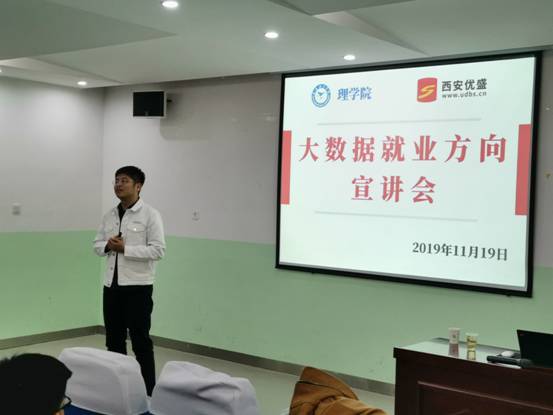 11月19日下午,gg999策略手机白菜邀请西安优盛信息技术公司的专业老师在南楼108报告厅举办有关大数据行业就业方向宣讲。gg999策略手机白菜信息计算专业的同学参加了宣讲会。
