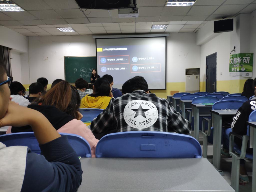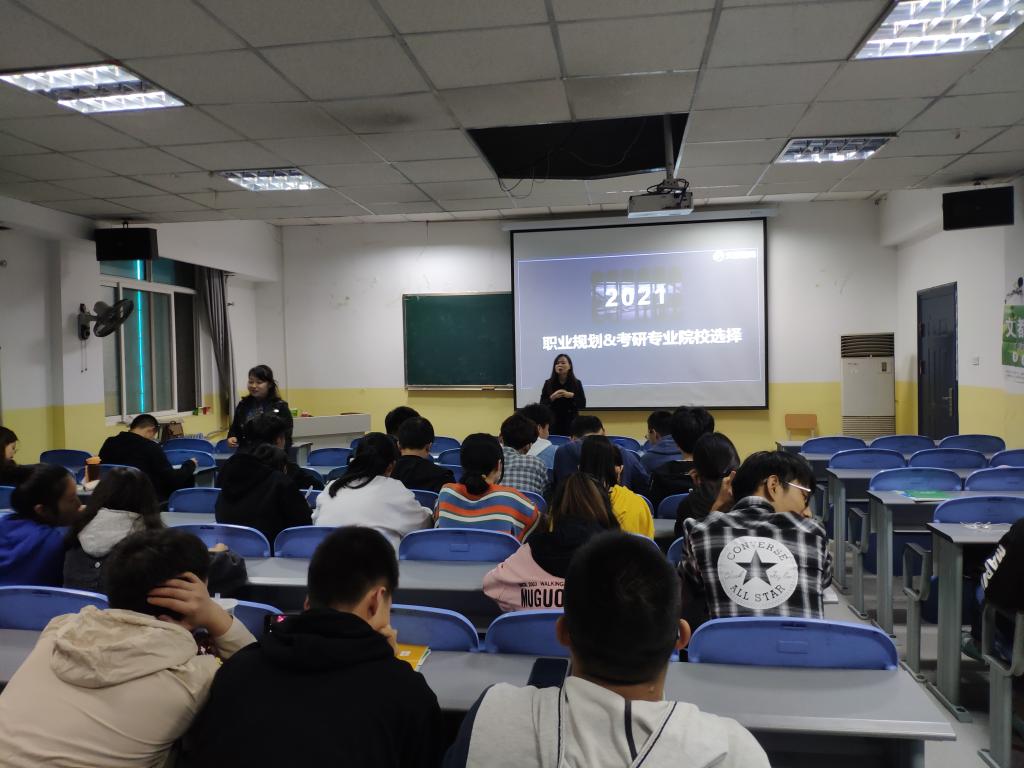 吴妮老师首先分析了大学四年不同的阶段员工们的心理,然后总结了大学四年必须要做的四件事,并且从人力资源面试方面分析了其重要性。接着引入毕业后可能的选择,考研是我们专业大部分本科毕业生的选择,老师也说明了考研的重要性。接着老师从公司、专业等方面进行了分析,对各高校、各专业的考试方向、内容、分数等方面进行讲解,让同学们深入了解考研的意义与益处。在简短的时间里让同学们受益匪浅。