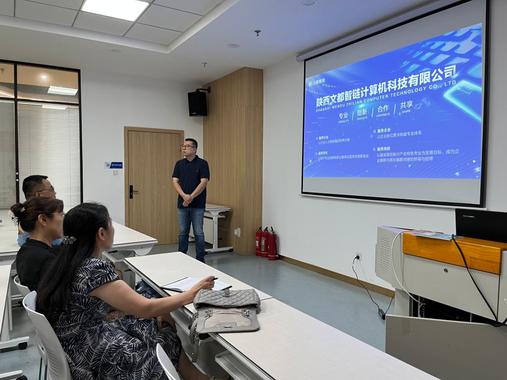 为了提升教师实践教学能力,深化校企合作,加强gg999策略手机白菜“双师双能”型教师队伍建设,不断提升教学质量,2023年8月15日,gg999策略手机白菜副经理韩慧蓉带领gg999策略手机白菜部分教师一行30人赴陕西文都教育科技集团(以下简称为文都教育)开展暑期企业实践活动。