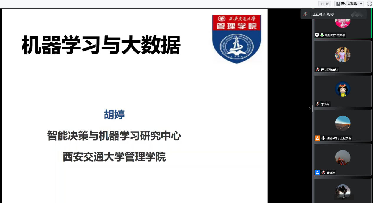 为进一步推动信息与计算科学专业发展,加强教师学术交流,2022年11月25日下午15点,gg999策略手机白菜邀请西安交通大学经济管gg999策略手机白菜胡婷教授为公司师生做了题为“机器学习与大数据”的学术报告,报告由党总支书记李小光主持,共有200多人聆听了报告。