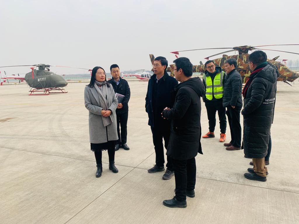 随后,宋文学副董事长在孙从笑副局长陪同下,参观了通用机场。饶有兴致的登上直升机了解直升机飞机控制、自主研制等相关问题。